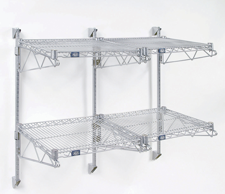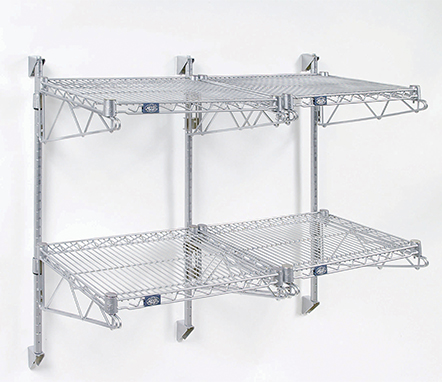 •This wall hung shelf system can use wire, solid metal, slotted polymer, solid plastic, or wine bottle shelves. Wire shelves have a weight capacity of up to 600 lbs. each*, however it depends on how they are secured to the wall as to the actual usable weight capacity.