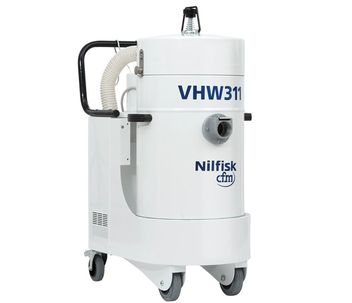 Nilfisk VHW 311 is a full optional industrial vacuum. Completely hooded, it is easy to clean and sanitize. High-end fixed industrial vacuum, for severe pharmaceutical, food, chemical, packaging and OEM needs ideal to be used on process machines (e.g: integrated on the machine or in a technical room).