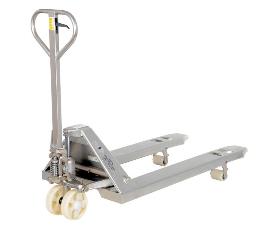 Pallet Trucks Stainless Steel Frame & Forks Ideal for sanitary, pharmaceutical, medical, food, corrosive and wet environments. Choose type 304 stainless steel frame and forks only or 100% type 304 stainless steel pallet truck for long life in the most harsh environments. 5,500 pounds uniform capacity.