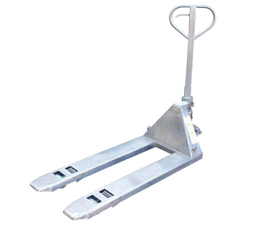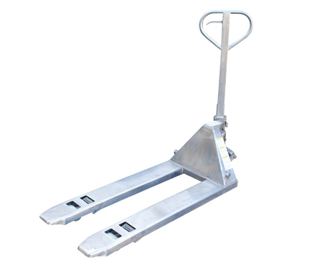 Pallet Trucks Stainless Steel model PM5-2048-SS Ideal for sanitary, pharmaceutical, medical, food, corrosive and wet environments. Choose type 304 stainless steel frame and forks only or 100% type 304 stainless steel pallet truck for long life in the most harsh environments. 5,500 pounds uniform capacity.