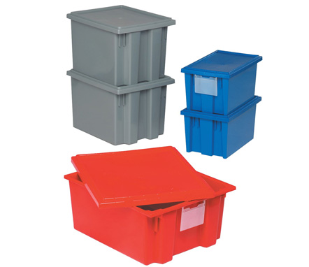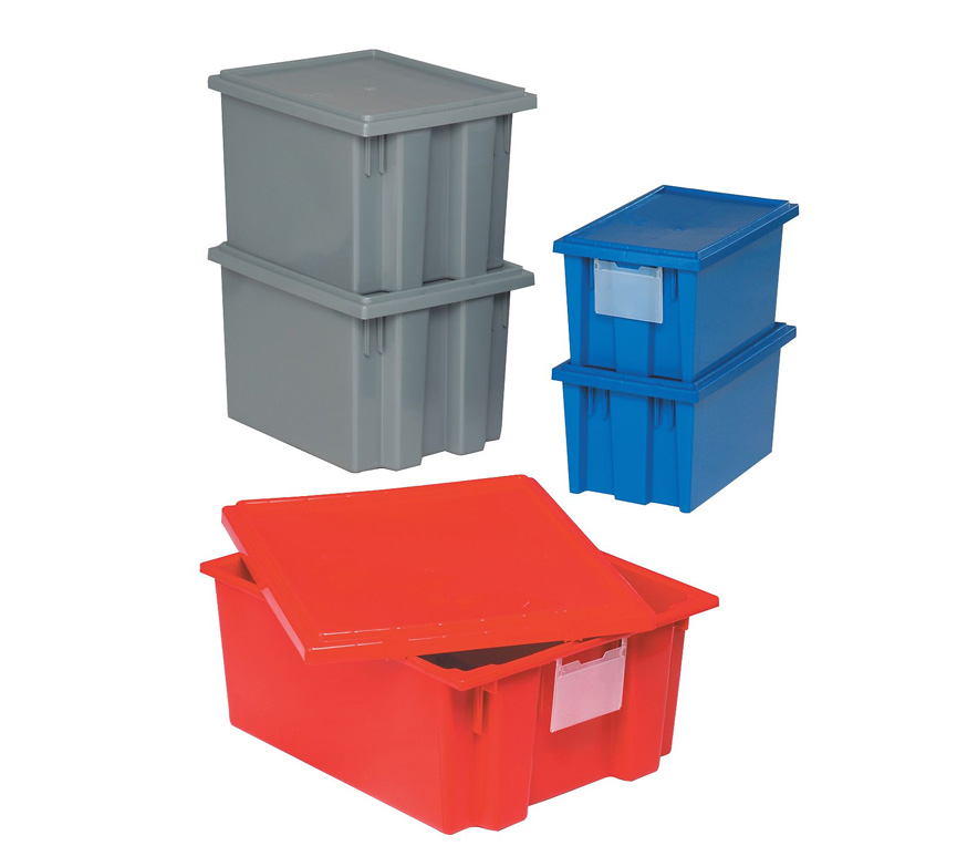 Plastic Storage Stack and Nest Containers SNT Series Stack and Nest heavy duty Containers (SNT series) are a family of and strong stack and nest totes that are ideal for storage or for the transportation of your possessions. They are available in nine different sizes and three colors, gray, blue or red. Ideally, they should be used for added efficiency and inventory control measures. Manufactured by Quantum Storage Systems.