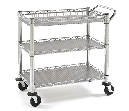 Utility Carts Wire 3SBP This versatile heavy-duty, multi-functional Utility Cart is constructed from industrial-strength steel. It’s ideal for use in kitchens, warehouses, garages, offices and restaurants, and simplifies the transporting of heavy and bulky loads.